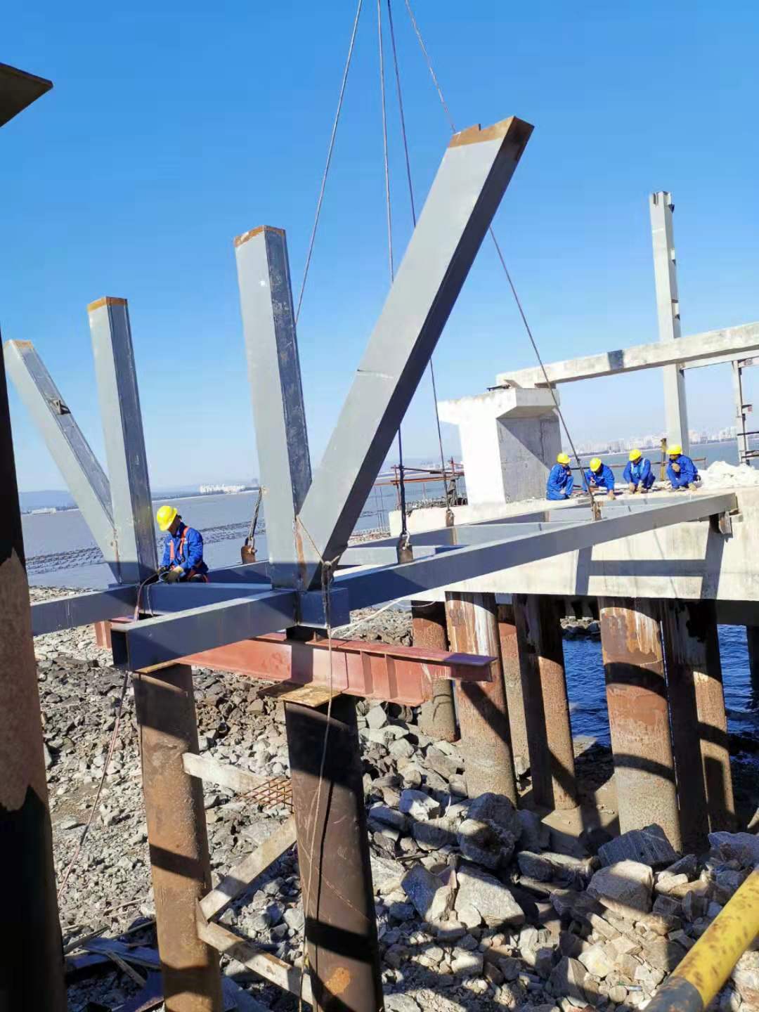 中化61.1米拼装接近尾声,跨堤桥正在安装。