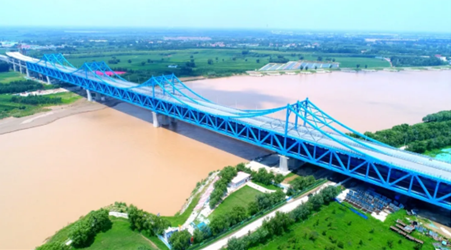 石家庄至济南客运专线是青(岛)太(原)客运专线的一部分,建成通车后连接起京广高速铁路、京沪高速铁路两大高速交通大动脉。石家庄至济南铁路客运专线济南黄河公铁两用桥是全线控制性重点工程,全长1792公里,主桥采用(128+3x180+128)米刚性悬索加劲连续钢桁梁跨越黄河主槽,是我国第一座大跨度刚性悬索加劲连续钢桁梁公铁两用桥,且首次采用带加劲弦多点同步顶推等施工新技术,取得了多项技术创新和突破。