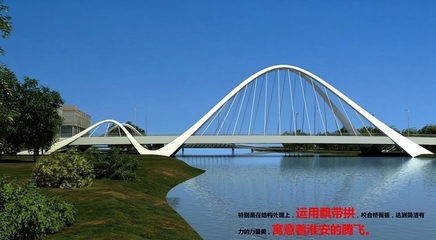 淮安市里运河文化长廊新城段项目怡园路桥于2014年8月份开工建设,全线长1330米,其中桥梁长167.5米,重350吨。该桥横跨里运河,采用钢箱拱结构,飘带拱造型,设计新颖独特,展现简洁有力的力量美。(甲方:江苏北方路桥工程有限公司)